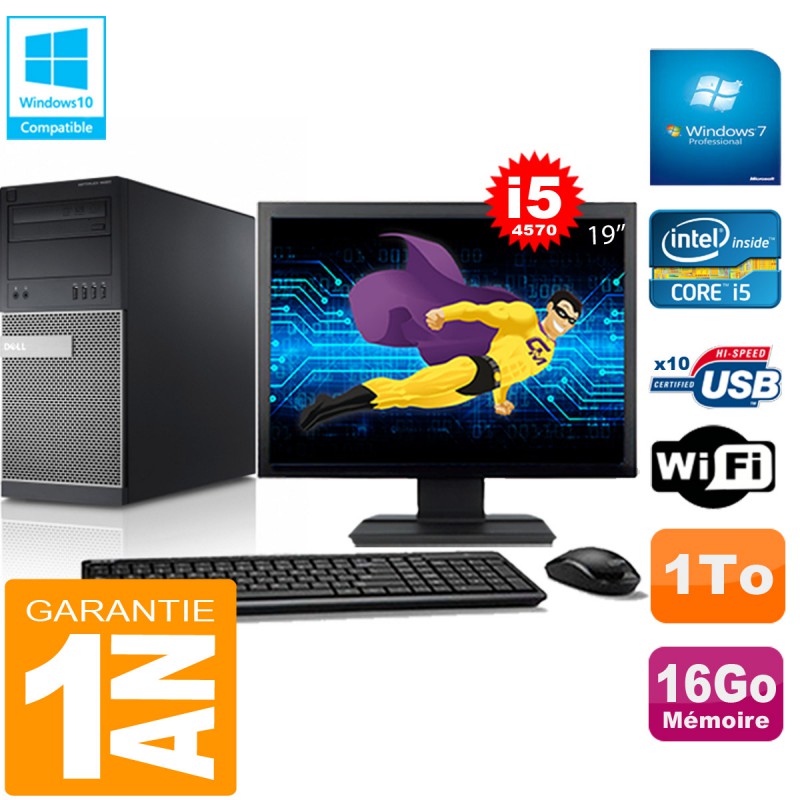 PC Tour DELL 9020 Core I5-4570 Ram 16Go Disque 1 To Wifi W7 Ecran 19"