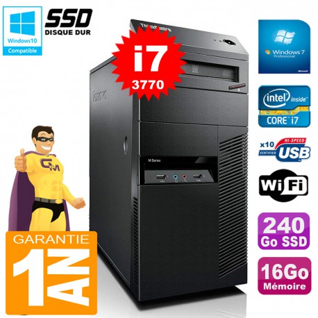 PC Tour Lenovo ThinkCentre M92p - Intel Core I7-3770 3.4Ghz (8 Mo de cache) - 16 Go DDR3 - Disque Dur 240 Go SSD - Graveur DVD - Clé WIFI USB - Windows 7 Pro - Garantie = 12 Mois.