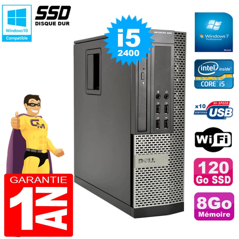 PC DELL Optiplex 990 SFF - Core I5-2400 (6 Mo de cache) - 8 Go DDR3 - Disque Dur 120 Go SSD - Graveur DVD - Clé WIFI USB - Windows 7 Pro - Garantie = 1 an.