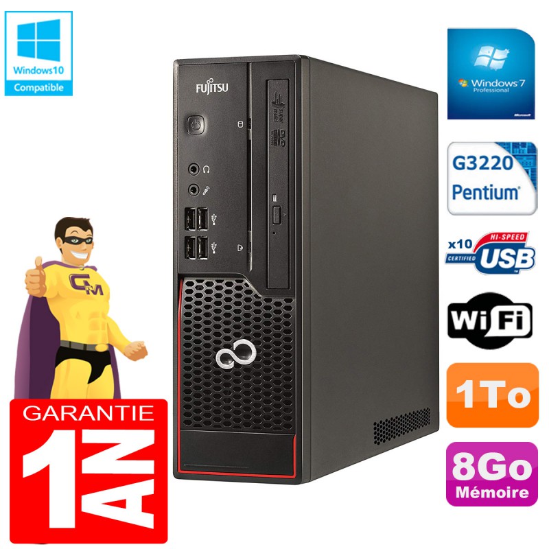 PC Fujitsu Esprimo C720 SFF Intel G3220 8Go Disque 1To Graveur DVD Wifi W7