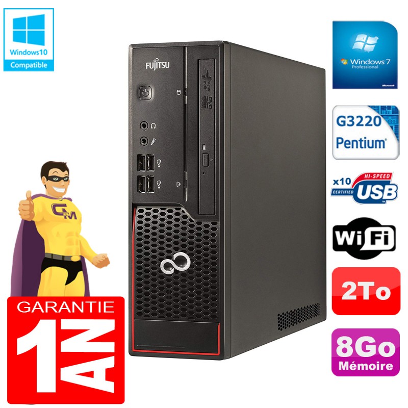 PC Fujitsu Esprimo C720 SFF Intel G3220 8Go Disque 2To Graveur DVD Wifi W7