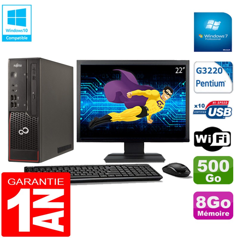PC Fujitsu Esprimo C720 SFF Intel G3220 8Go Disque 500 Go Wifi W7 Ecran 22"