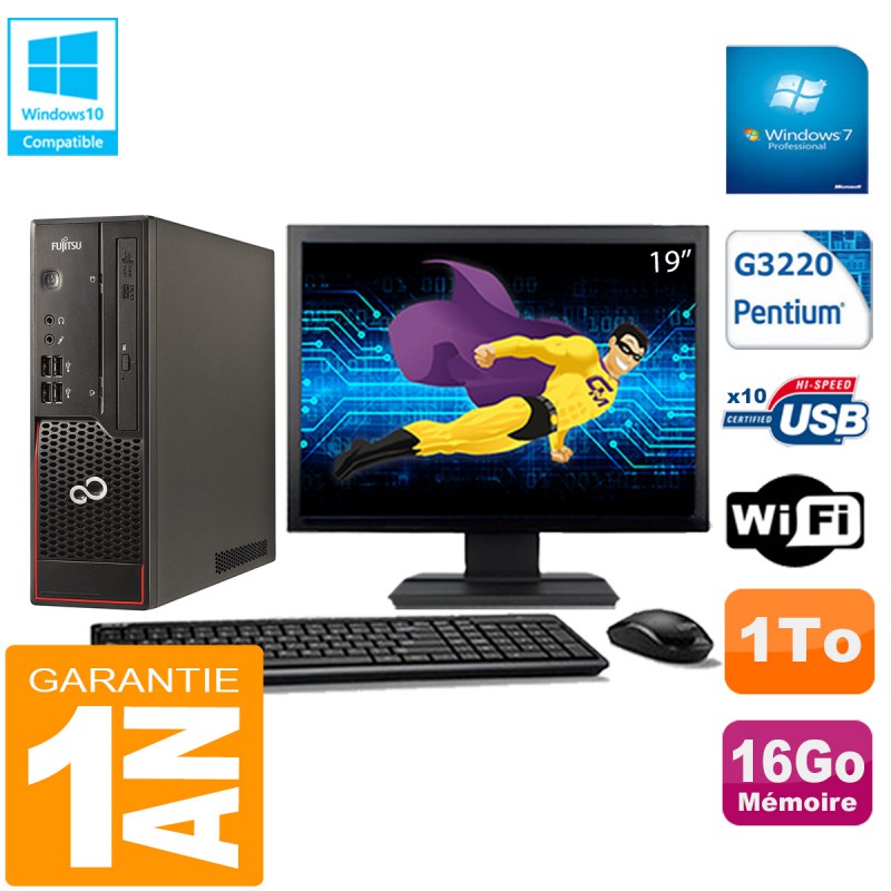 PC Fujitsu Esprimo C720 SFF Intel G3220 16Go Disque 1To Wifi W7 Ecran 19"
