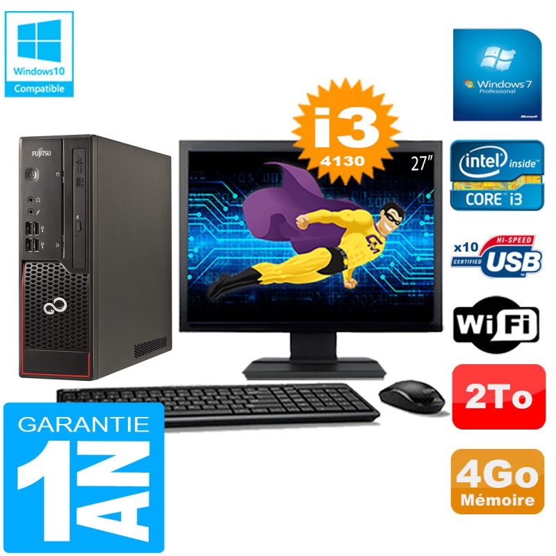PC Fujitsu Esprimo C720 SFF Core I3-4130 4Go Disque 2To Wifi W7 Ecran 27"