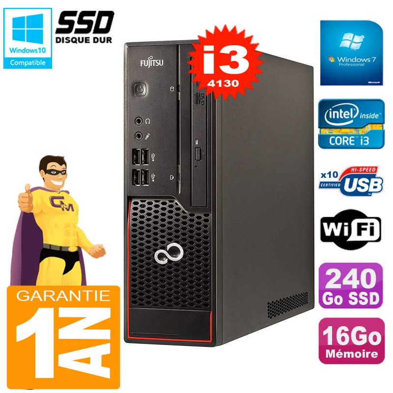 PC Fujitsu Esprimo C720 SFF Core I3-4130 Ram 16Go 240Go SSD Graveur DVD Wifi W7
