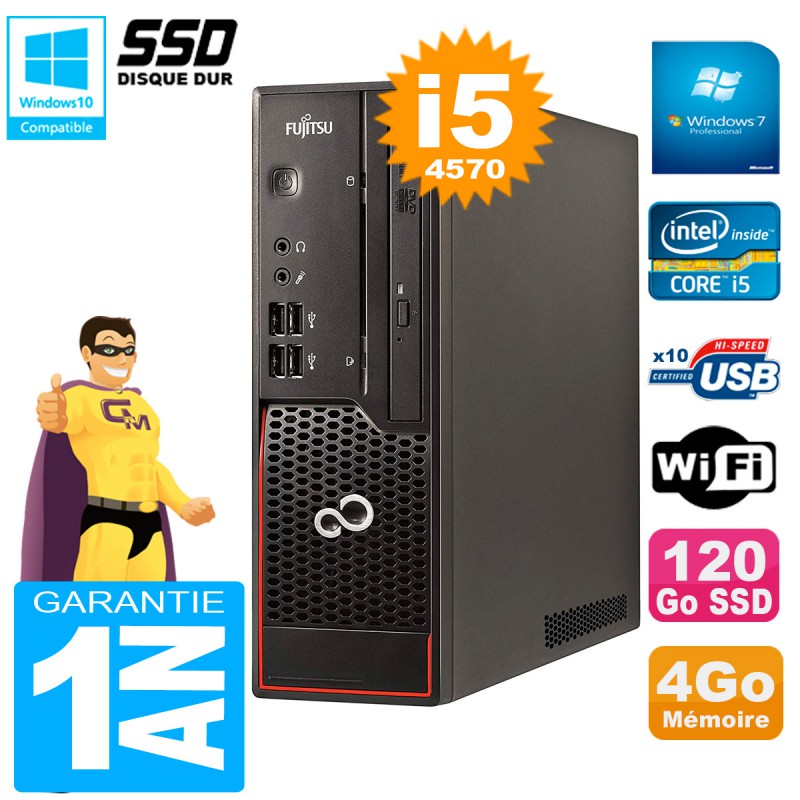 PC Fujitsu Esprimo C720 SFF - Core I5-4570 (6 Mo de cache) - 4Go DDR3 - Disque Dur 120Go SSD - Graveur DVD - Clé WIFI USB - Windows 7 Pro - Garantie = 1 an.