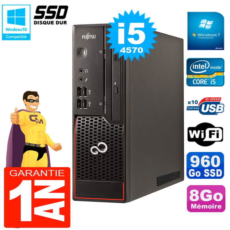 PC Fujitsu Esprimo C720 SFF - Core I5-4570 (6 Mo de cache) - 8Go DDR3 - Disque Dur 960Go SSD - Graveur DVD - Clé WIFI USB - Windows 7 Pro - Garantie = 1 an.