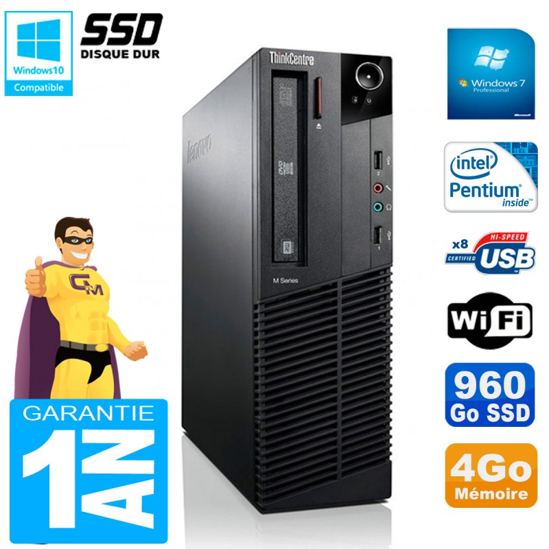 PC Lenovo M92p SFF - Intel G630 2,7Ghz (3 Mo de cache) - 4Go DDR3 - Disque Dur 960 Go SSD - Graveur DVD - Clé WIFI USB - Windows 7 Pro - Garantie = 1 an.