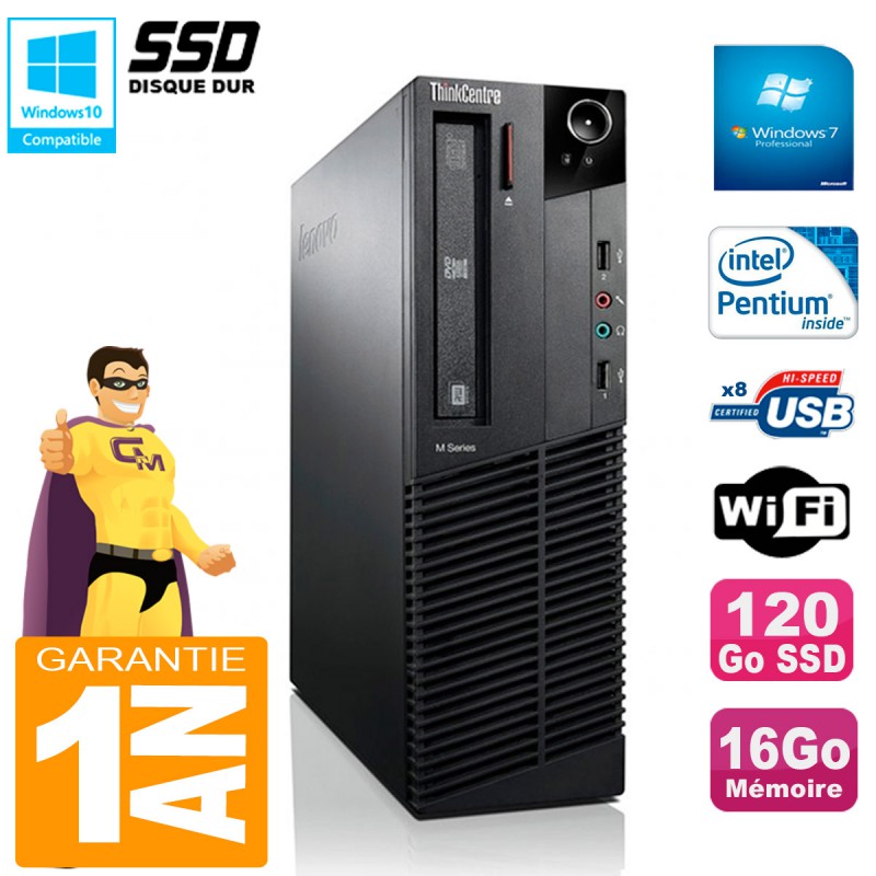 PC Lenovo M92p SFF - Intel G630 2,7Ghz (3 Mo de cache) - 16Go DDR3 - Disque Dur 120 Go SSD - Graveur DVD - Clé WIFI USB - Windows 7 Pro - Garantie = 1 an.