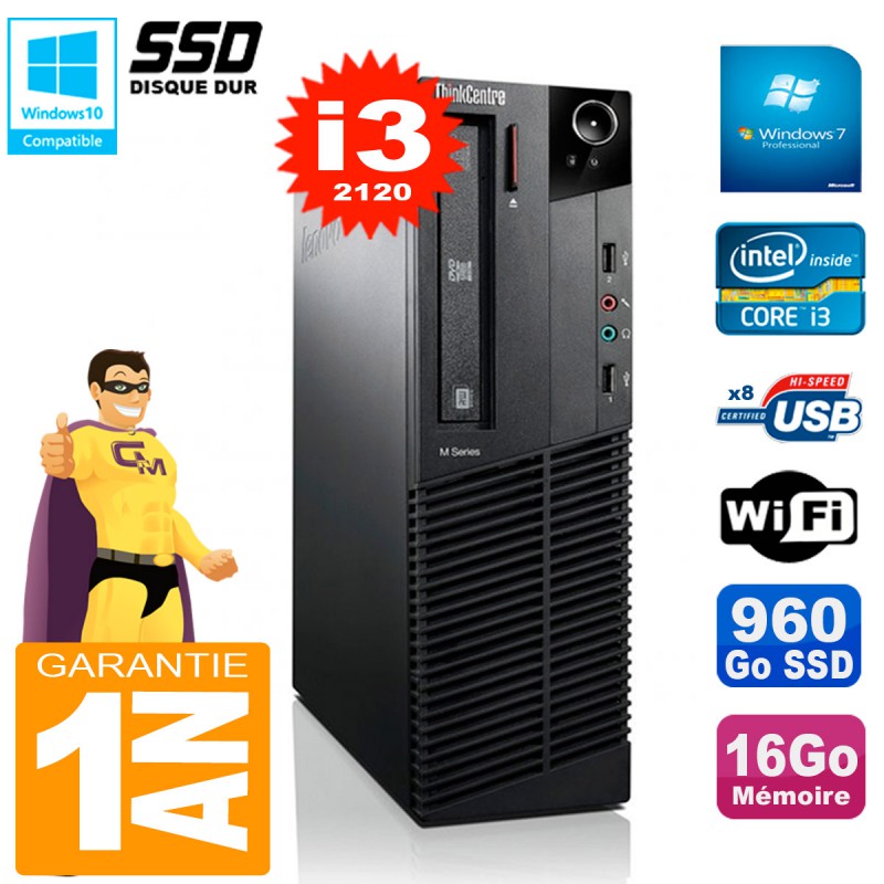PC Lenovo M92p SFF Core I3-2120 16Go Disque 960Go SSD Graveur DVD Wifi W7