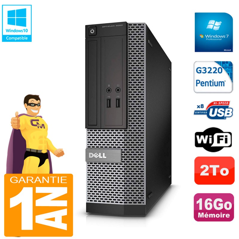 PC DELL 3020 SFF - Intel Pentium G3220 3.0GHz (3 Mo de cache) - 16Go DDR3 - Disque Dur 2 To - Graveur DVD - Clé WIFI USB - Windows 7 Pro - Garantie = 1 an.