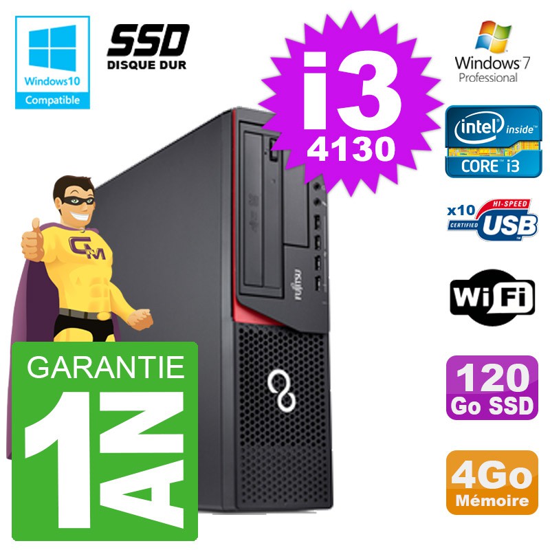 PC Fujitsu Esprimo E720 - Intel Core I3-4130 3,40Ghz (3 Mo de cache) - 4 Go DDR3 - Disque Dur 120 Go SSD - Graveur DVD - Clé WIFI USB - Windows 7 Pro - Garantie = 1 an.