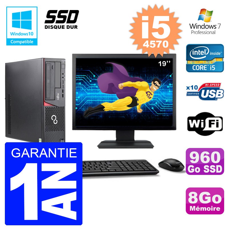 PC Fujitsu Esprimo E720 E85+ DT Ecran 19'' i5-4570 RAM 8Go 960 Go SSD Wifi W7