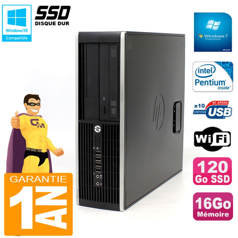PC HP Compaq 8300 SFF Intel G850 RAM 16Go Disque 120 Go SSD Graveur DVD Wifi W7