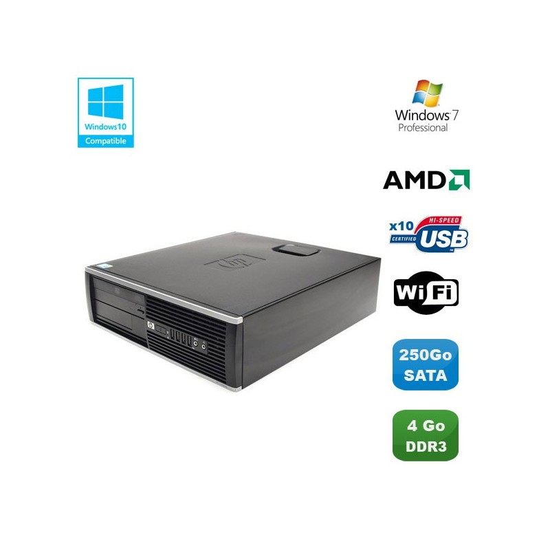PC HP Compaq 6005 Pro SFF - AMD Phenom II x2 B55 3.00GHz - RAM 4 Go DDR3 - Disque dur 250 SATA - Graveur DVD - Windows 7 Pro - Clé WIFI USB - Garantie 6 mois.