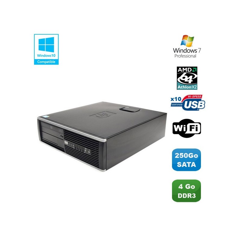 PC HP Compaq 6005 Pro SFF AMD Athlon II x2 B28 3.40GHz - RAM 4 Go DDR3 - Disque dur 250 SATA - Graveur DVD - Windows 7 Pro - Clé WIFI USB - Garantie 6 mois.