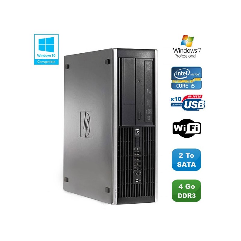PC HP Compaq Elite 8100 SFF - Intel Core i5 650 3.2GHz (Turbo 3.46Ghz) - 2 Coeurs (4 Threads) - RAM 4 Go DDR3 - Disque dur 2To SATA - Graveur DVD - clé WIFI USB - Windows 7 Pro - Garantie = 6 mois.