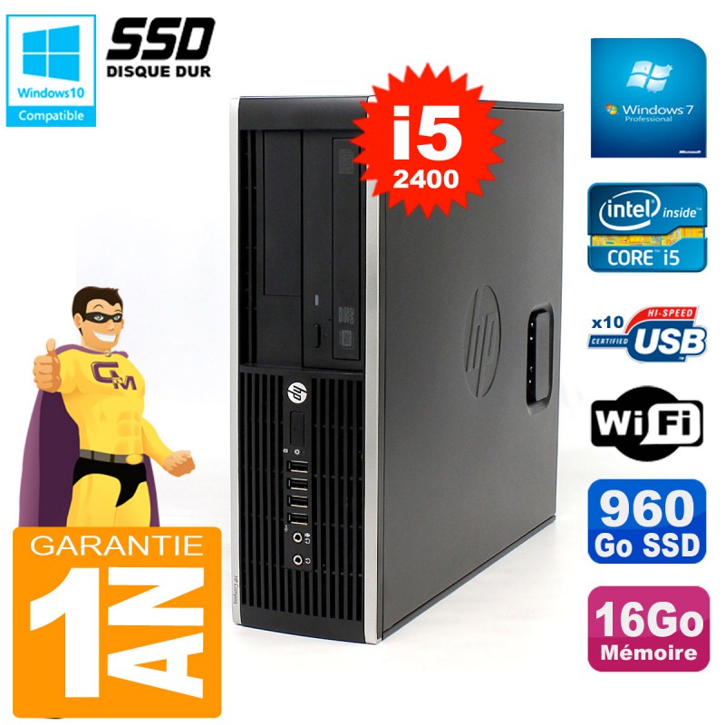 PC HP Compaq Elite 8300 SFF - Intel Core I5-2400 3.10GHz (6 Mo de cache) - 16 Go DDR3 - Disque Dur 960 Go SSD - Graveur DVD - Clé WIFI USB - Windows 7 Pro - Garantie = 1 an.