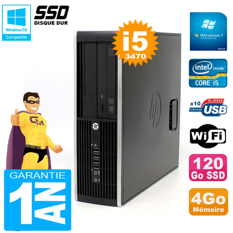 PC HP Compaq Elite 8300 SFF - Intel Core I5-3470 3.20GHz (6 Mo de cache) - 4 Go DDR3 - Disque Dur 120 Go SSD - Graveur DVD - Clé WIFI USB - Windows 7 Pro - Garantie = 1 an.