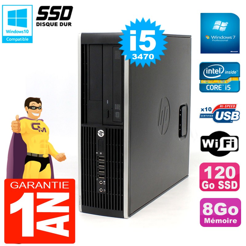 PC HP Compaq Elite 8300 SFF - Intel Core I5-3470 3.20GHz (6 Mo de cache) - 8 Go DDR3 - Disque Dur 120 Go SSD - Graveur DVD - Clé WIFI USB - Windows 7 Pro - Garantie = 1 an.