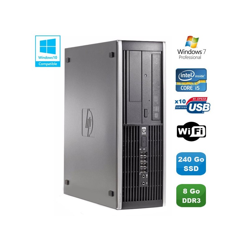 PC HP Compaq Elite 8100 SFF Intel Core i5 3.2GHz 8Go 240Go SSD Graveur WIFI W7