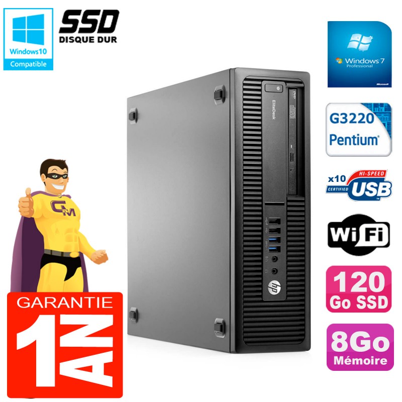 PC HP EliteDesk 800 G1 SFF Intel G3220 8Go Disque 120 Go SSD Graveur DVD Wifi W7