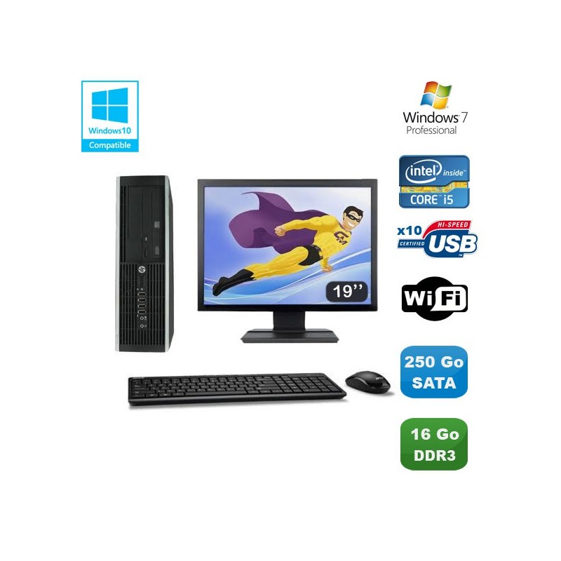 Lot PC HP Elite 8100 SFF Intel Core i5 3.2GHz 16Go 250Go Graveur WIFI W7 + 19