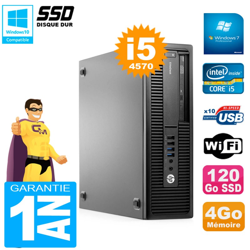 PC HP EliteDesk 800 G1 SFF Core I5-4570 RAM 4Go 120 Go SSD Graveur DVD Wifi W7