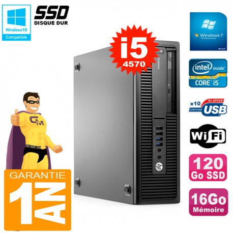 PC HP EliteDesk 800 G1 SFF Core I5-4570 RAM 16Go 120 Go SSD Graveur DVD Wifi W7