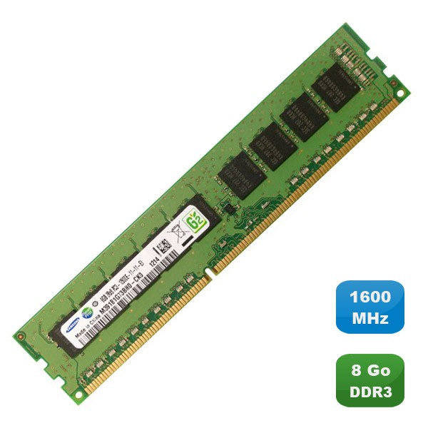 Barrette Mémoire RAM pour Serveur - DDR3 - SAMSUNG - M391B1G73BH0-CK0 - 8Go ECC - 1600Mhz - PC3-12800E - 240Pin DIMM - CL11 - 2Rx8 - 1.5V - Garantie = 6 mois.