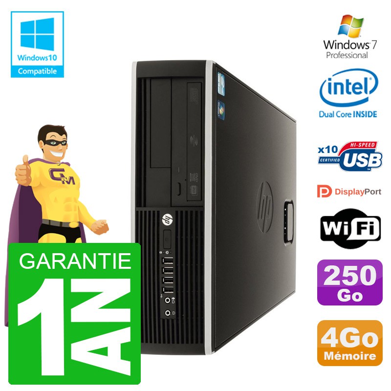 PC HP Elite 8100 SFF - Intel Pentium G6950 2.80GHz (3 Mo de cache) - 4 Go DDR3 - Disque Dur 3,5" 250 Go - Graveur DVD - Clé WIFI USB - Windows 7 Pro - Garantie 1 an.