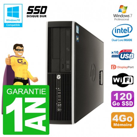 PC HP Elite 8100 SFF - Intel Pentium G6950 2.80GHz (3 Mo de cache) - 4 Go DDR3 - Disque Dur SSD 120 Go - Graveur DVD - Clé WIFI USB - Windows 7 Pro - Garantie 1 an.