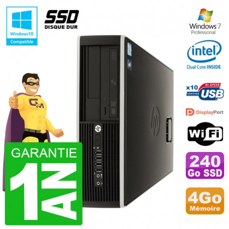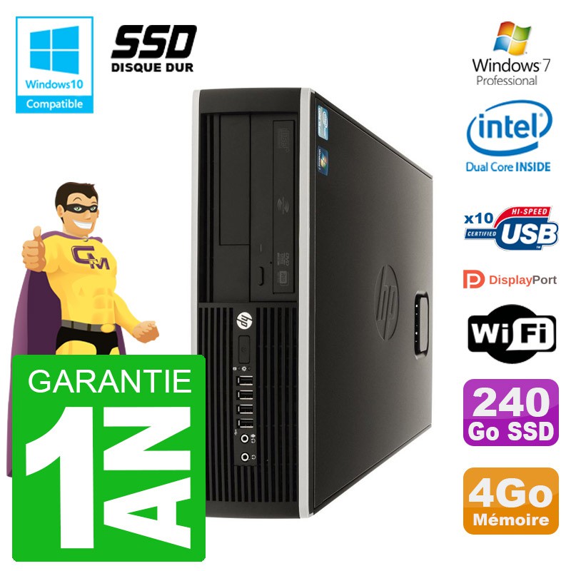 PC HP Elite 8100 SFF - Intel Pentium G6950 2.80GHz (3 Mo de cache) - 4 Go DDR3 - Disque Dur SSD 240 Go - Graveur DVD - Clé WIFI USB - Windows 7 Pro - Garantie 1 an.