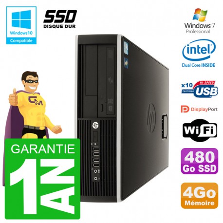 PC HP Elite 8100 SFF - Intel Pentium G6950 2.80GHz (3 Mo de cache) - 4 Go DDR3 - Disque Dur SSD 480 Go - Graveur DVD - Clé WIFI USB - Windows 7 Pro - Garantie 1 an.