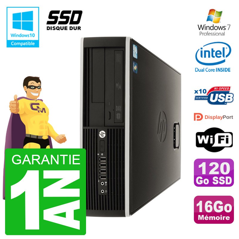 PC HP Elite 8100 SFF - Intel Pentium G6950 2.80GHz (3 Mo de cache) - 16 Go DDR3 - Disque Dur SSD 120 Go - Graveur DVD - Clé WIFI USB - Windows 7 Pro - Garantie 1 an.
