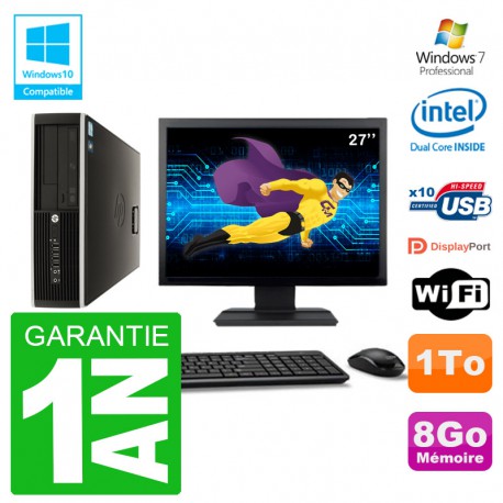 PC HP Elite 8100 SFF - Intel Pentium G6950 2.80GHz (3 Mo de cache) - 8 Go DDR3 - Disque Dur 3,5" 1 To - Graveur DVD - Clé WIFI USB - Windows 7 Pro - Livré avec Ecran 27" + clavier + souris (Marques et modèles selon arrivages) - Garantie 1 an.