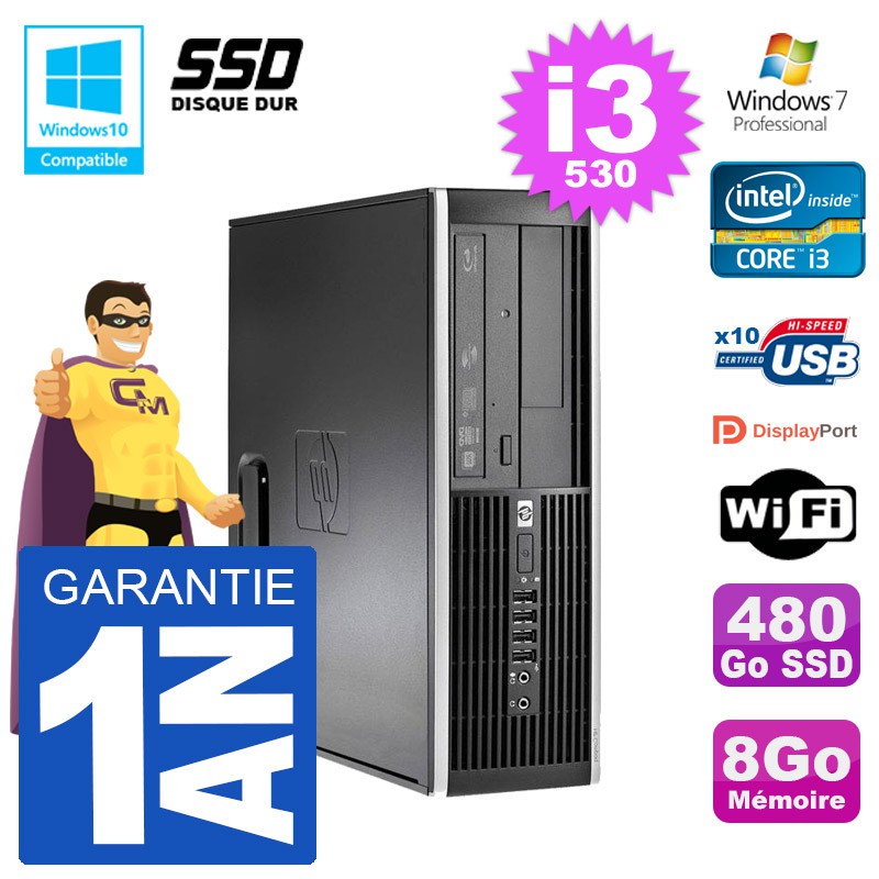 PC HP Compaq 8100 SFF i3-530 RAM 8Go SSD 480Go Graveur DVD Wifi W7