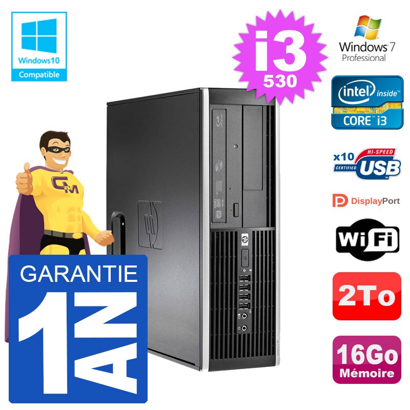 PC HP Compaq 8100 SFF i3-530 RAM 16Go Disque 2To Graveur DVD Wifi W7