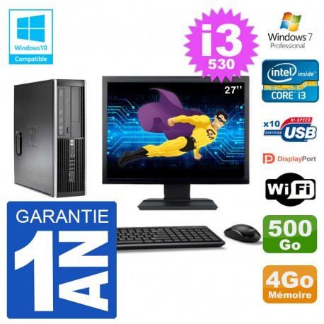 PC HP Elite 8100 SFF - Intel Core I3-530 2,93 Ghz (4 Mo de cache) - 4 Go DDR3 - Disque Dur 3,5" 500 Go - Graveur DVD - Clé WIFI USB - Windows 7 Pro - Livré avec Ecran 27" + clavier + souris (Marques et modèles selon arrivages) - Garantie 1 an.