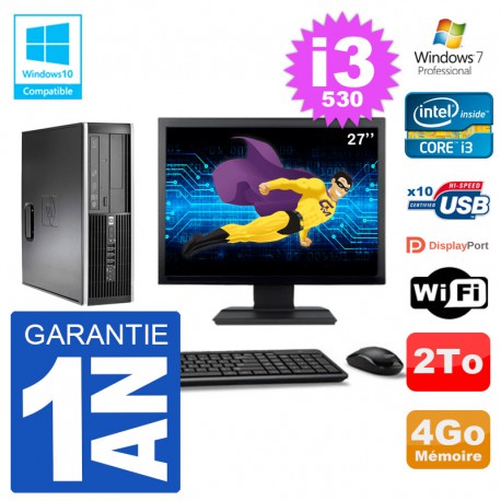 PC HP Elite 8100 SFF - Intel Core I3-530 2,93 Ghz (4 Mo de cache) - 4 Go DDR3 - Disque Dur 3,5" 2 To - Graveur DVD - Clé WIFI USB - Windows 7 Pro - Livré avec Ecran 27" + clavier + souris (Marques et modèles selon arrivages) - Garantie 1 an.