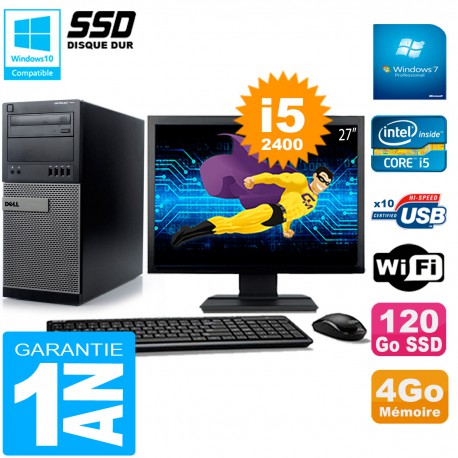 PC Tour DELL 7010 Ecran 27" Core I5-2400 RAM 4Go Disque 120 Go SSD Wifi W7