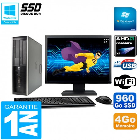 PC HP Compaq 6005 Pro SFF Ecran 27" AMD Phenom II RAM 4Go 960 Go SSD Wifi W7