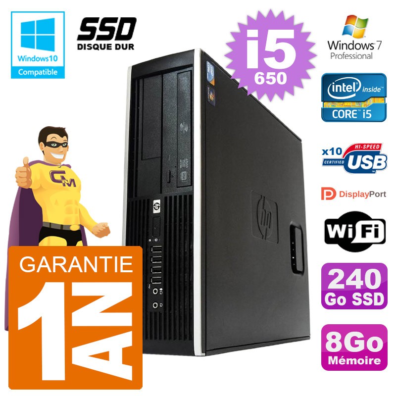 PC HP Compaq 8100 SFF i5-650 RAM 8Go SSD 240Go Graveur DVD Wifi W7