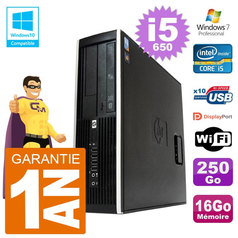 PC HP Compaq 8100 SFF i5-650 RAM 16Go Disque 250Go Graveur DVD Wifi W7