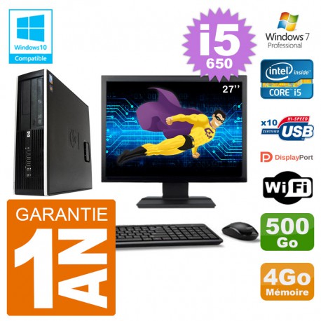 PC HP Compaq 8100 SFF Ecran 27" i5-650 RAM 4Go Disque 500Go Graveur DVD Wifi W7