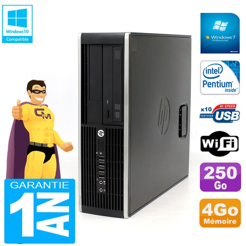 PC HP Compaq Pro 6200 SFF - Intel G840 - 4Go DDR3 - Disque Dur 250 Go - Graveur DVD - Clé WIFI USB - Windows 7 Pro - Garantie = 1 an.