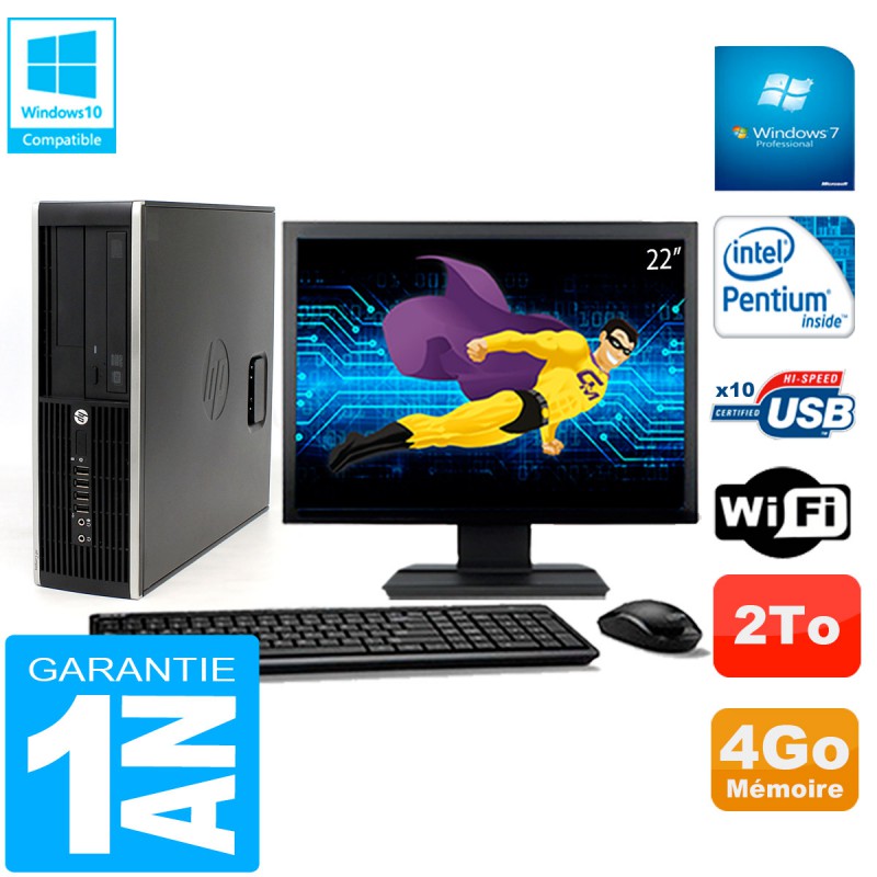 PC HP Compaq Pro 6200 SFF Ecran 22" Intel G840 4Go 2To Graveur DVD Wifi W7