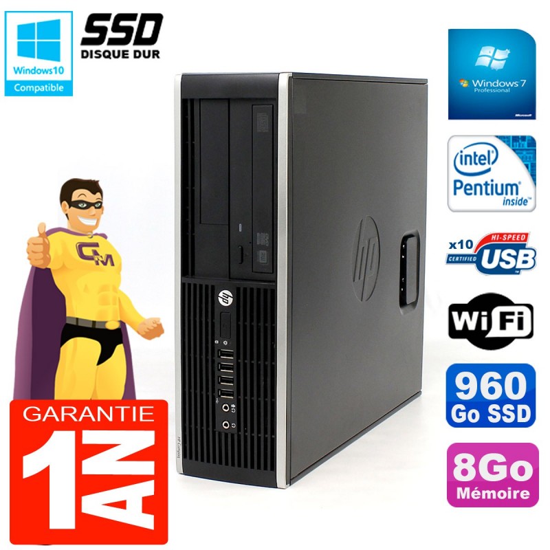 PC HP Compaq Pro 6200 SFF Intel G840 RAM 8Go 960 Go SSD Graveur DVD Wifi W7