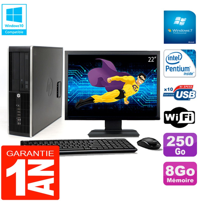 PC HP Compaq Pro 6200 SFF Ecran 22" Intel G840 8Go 250Go Graveur DVD Wifi W7