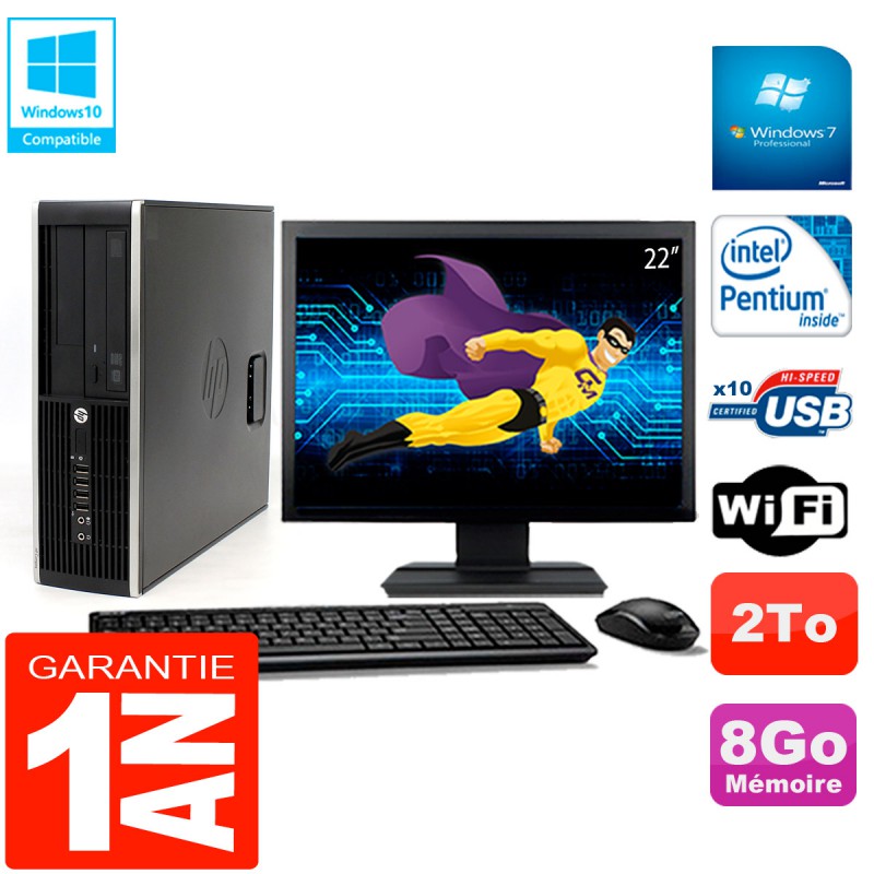 PC HP Compaq Pro 6200 SFF Ecran 22" Intel G840 8Go 2To Graveur DVD Wifi W7